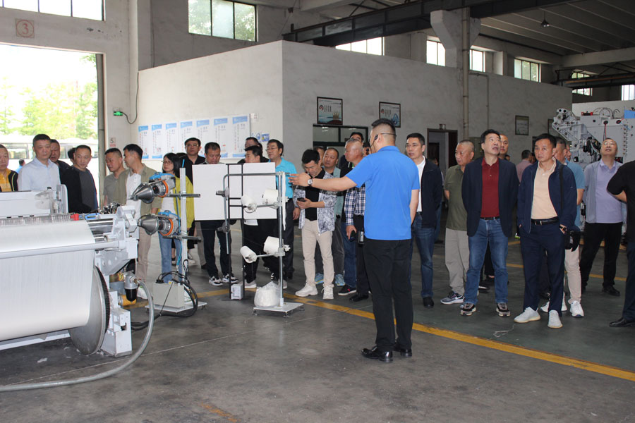6月14日,為增強(qiáng)織造紡織行業(yè)上下游交流互動,由盛澤織造商會榮譽(yù)會長吳留生先生、會長史連明先生帶隊(duì),商會監(jiān)事長、顧問、書記、秘書長、常務(wù)副會長、副會長、監(jiān)事及理事會員一行50余人蒞臨青島天一紅旗紡機(jī)集團(tuán)有限公司參觀指導(dǎo)。公司董事長劉培德,銷售總監(jiān)李德勝等領(lǐng)導(dǎo)與商會來賓齊聚一堂,共同參觀了天一紅旗先進(jìn)的制造工廠,共敘友誼,齊繪藍(lán)圖。